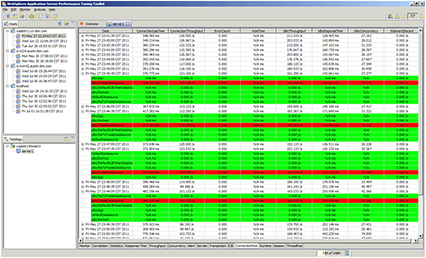 This is a very useful tool that connects to the deployment manager of a cluster. Once connected you have access to all of the performance indicators available on the Performance Viewer. It is much easier to navigate and switch back and forth different servers and indicators.