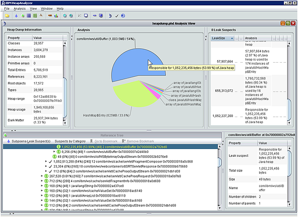 As an IBM customer you have access to IBM support and the ability to create support tickets (PMRs), so leverage that benefit! IBM support can often help analyze these files and help rule out if there are potential memory leaks caused by the product. They will not help you diagnose problems where the application code is the culprit, but they will at least rule out the leak is caused by a known or new APAR (Authorized Program Analysis Report).